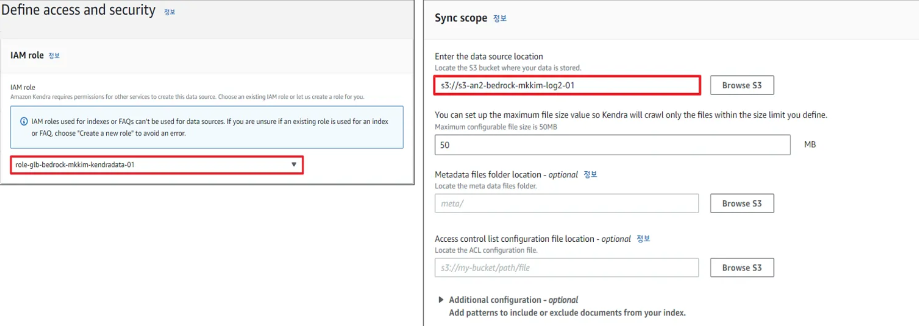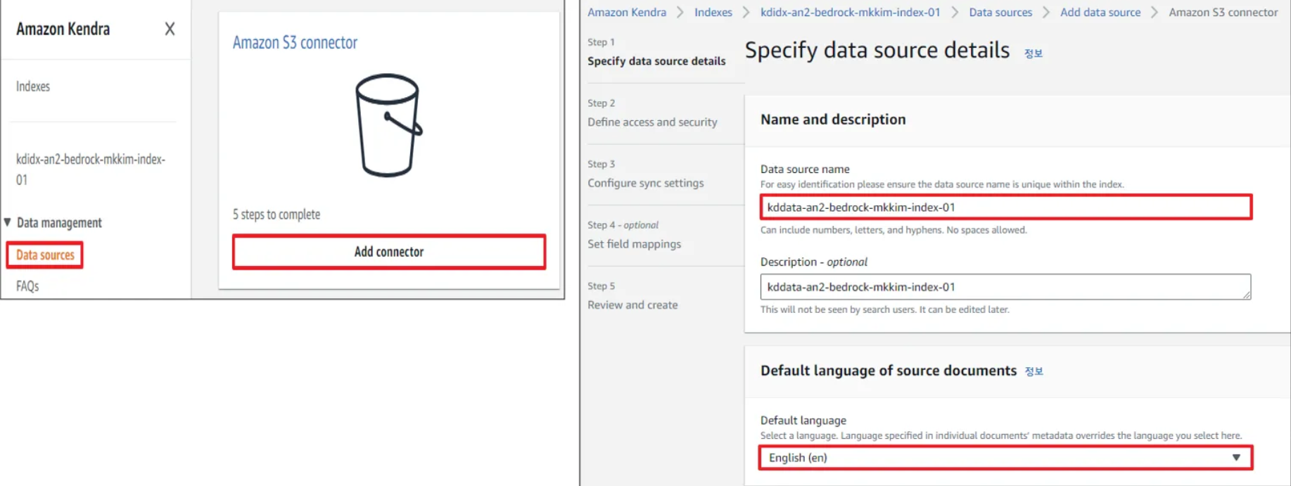 - Kendra 데이터 소스(Data Source) 생성 - S3 Connector 사용 2