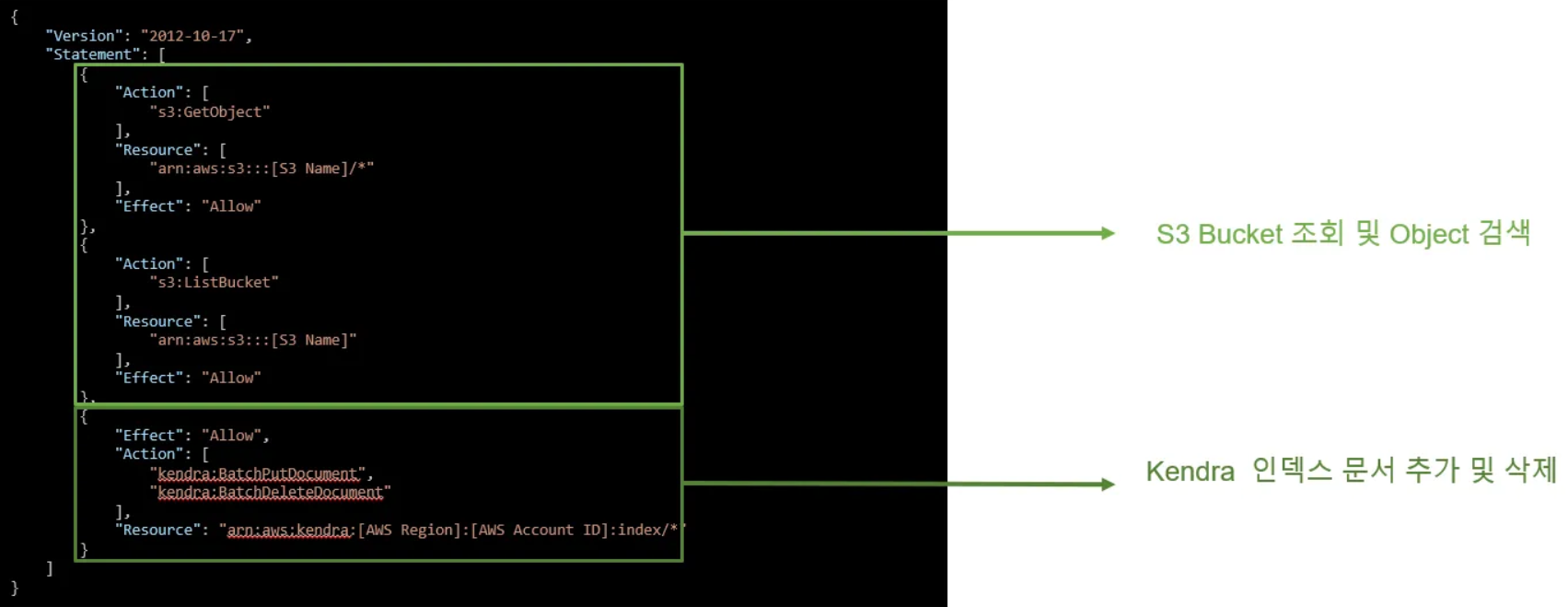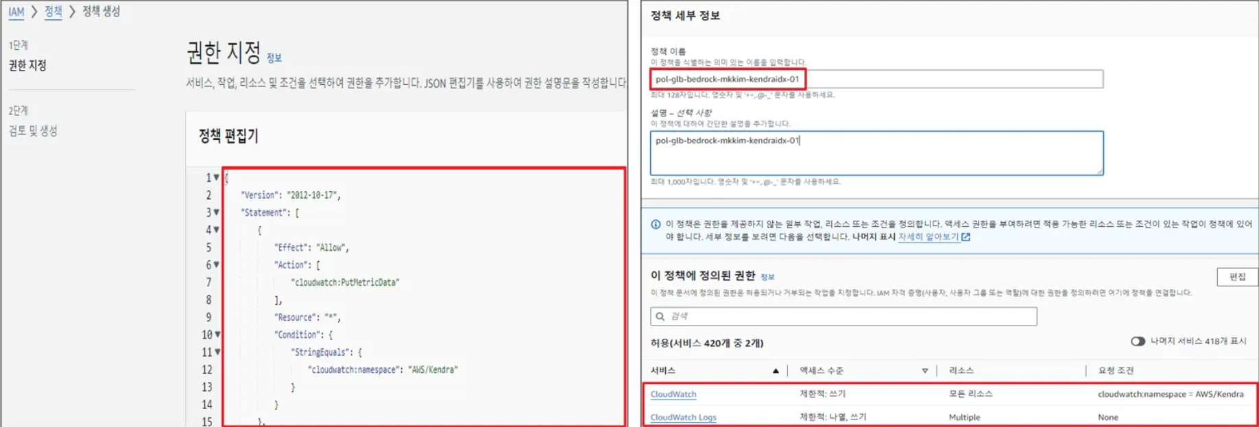 - Kendra 인덱스 역할(Role)에 정책(Policy) 연결