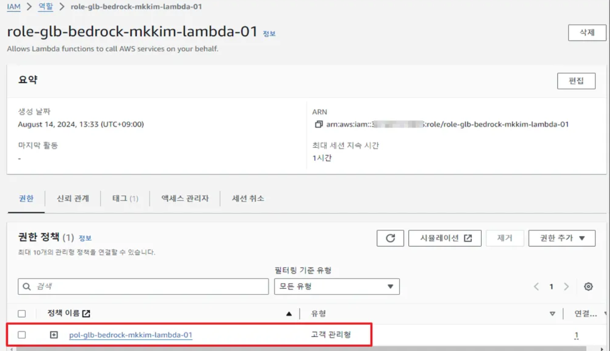 - 람다(Lambda) 함수 역할(Role)에 정책(Policy) 연결