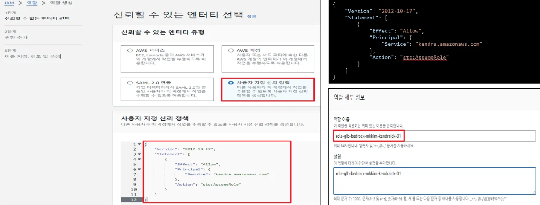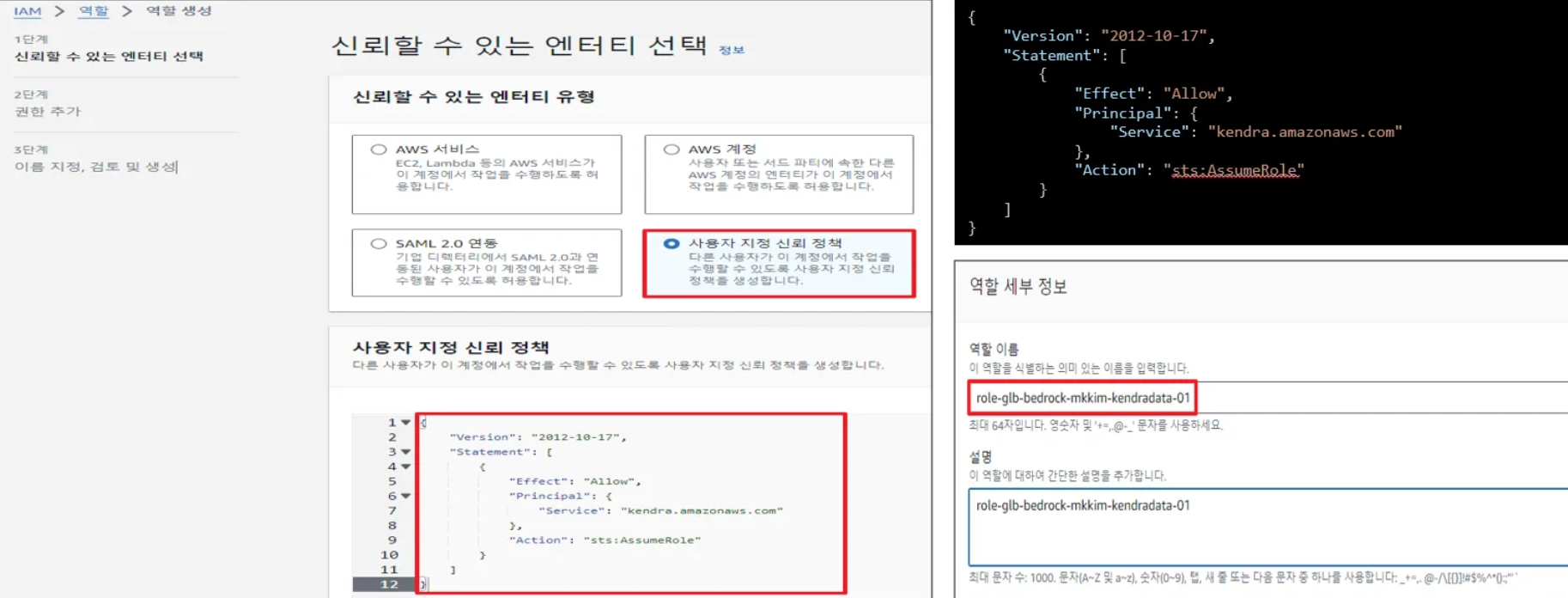 - Kendra 데이터 소스(Data Source) 역할(Role) 생성