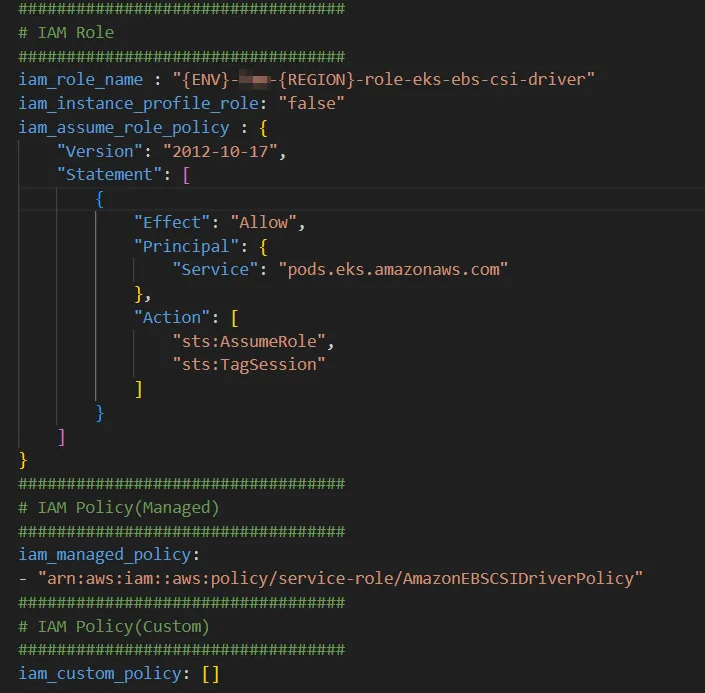 EKS Pod Identity에서 요구하는 신뢰 정책으로 IAM 역할 생성 완료된 상태.
